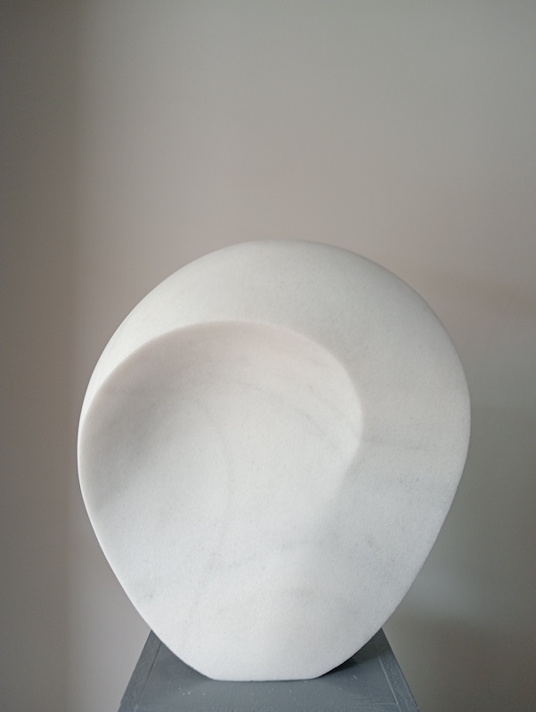 Medidas 39 X 12 X 4 cm (pieza única, firmada) Materiales mármol blanco de Macael sobre base en acero inoxidable Año 2019